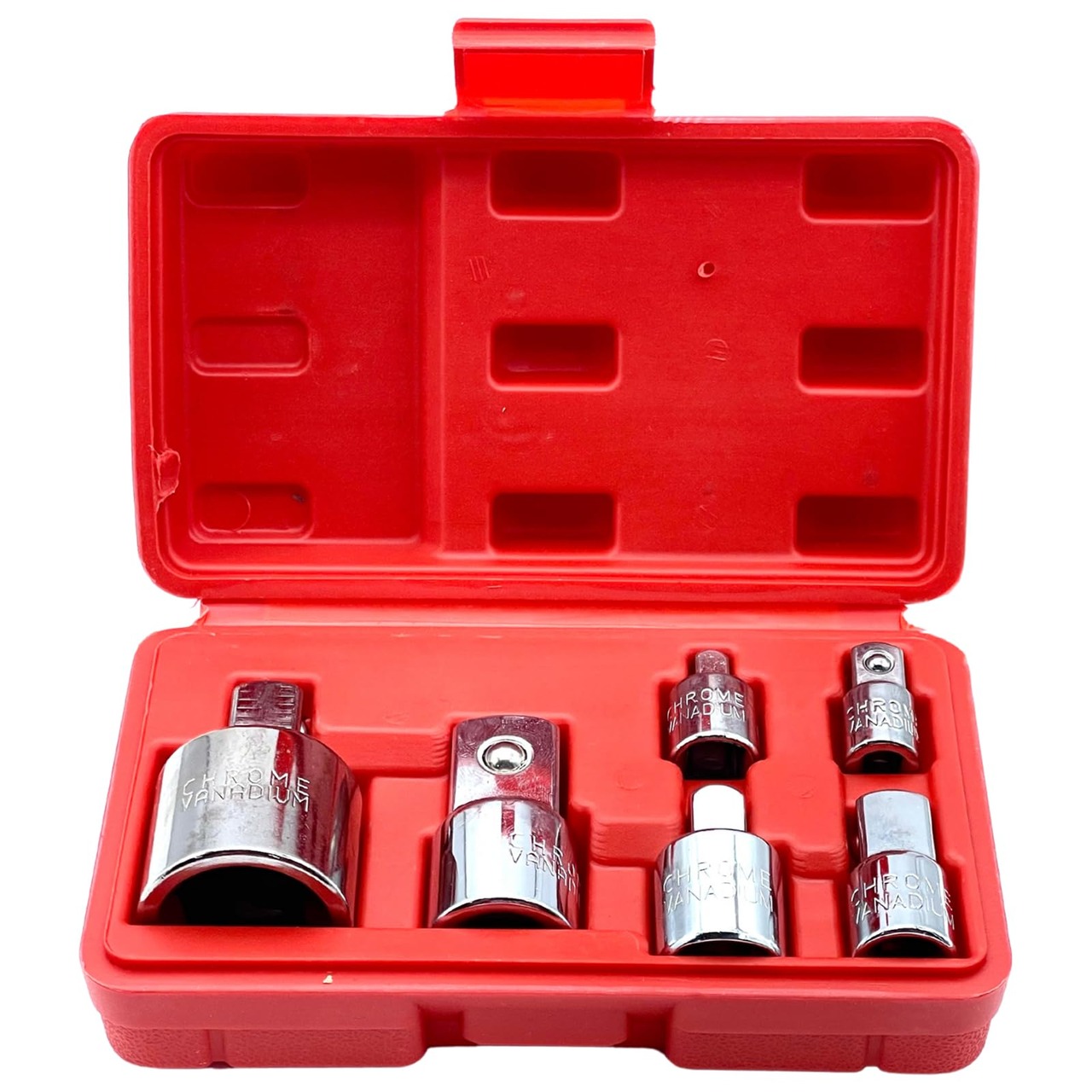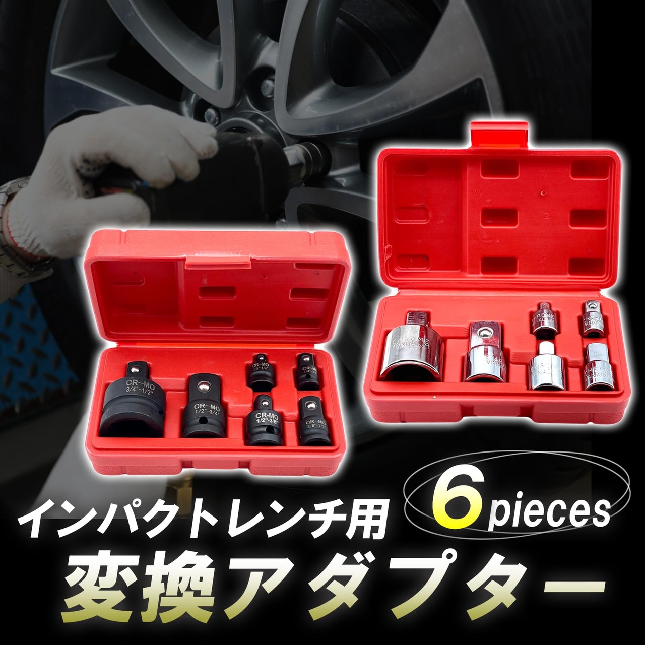 ✅【商品内容】インパクトレンチ対応の差込角の変換が可能なソケット変換アダプター6点セットになります。 ✅【簡単な操作性】エアーインパクトレンチや電動インパクトレンチに装着するだけで、簡単に差込角のサイズを変換できます。 ✅【素材・品質】高品質なクロムバナジウム鋼を採用しており、耐久性や耐摩耗性に優れてるので、安心してお使いいただけます。 ✅【付属品】収納や運搬に便利なプラスチックボックス付きで、紛失の心配もございません。 ✅【変換サイズ】1/4インチ(6.3mm)⇔3/8(9.5mm)、3/8(9.5mm)⇔1/2(12.7mm)、1/2(12.7mm)⇔3/4(19mm)