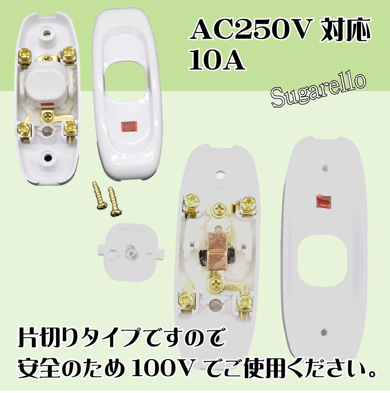 Sugarello 中間スイッチ インライン ランプ付き ON/OFF スイッチ 照明器具 換気扇 手元スイッチ 増設用 シーソースイッチ AC 250V 10A 片切スイッチ ホワイト 2個セット
