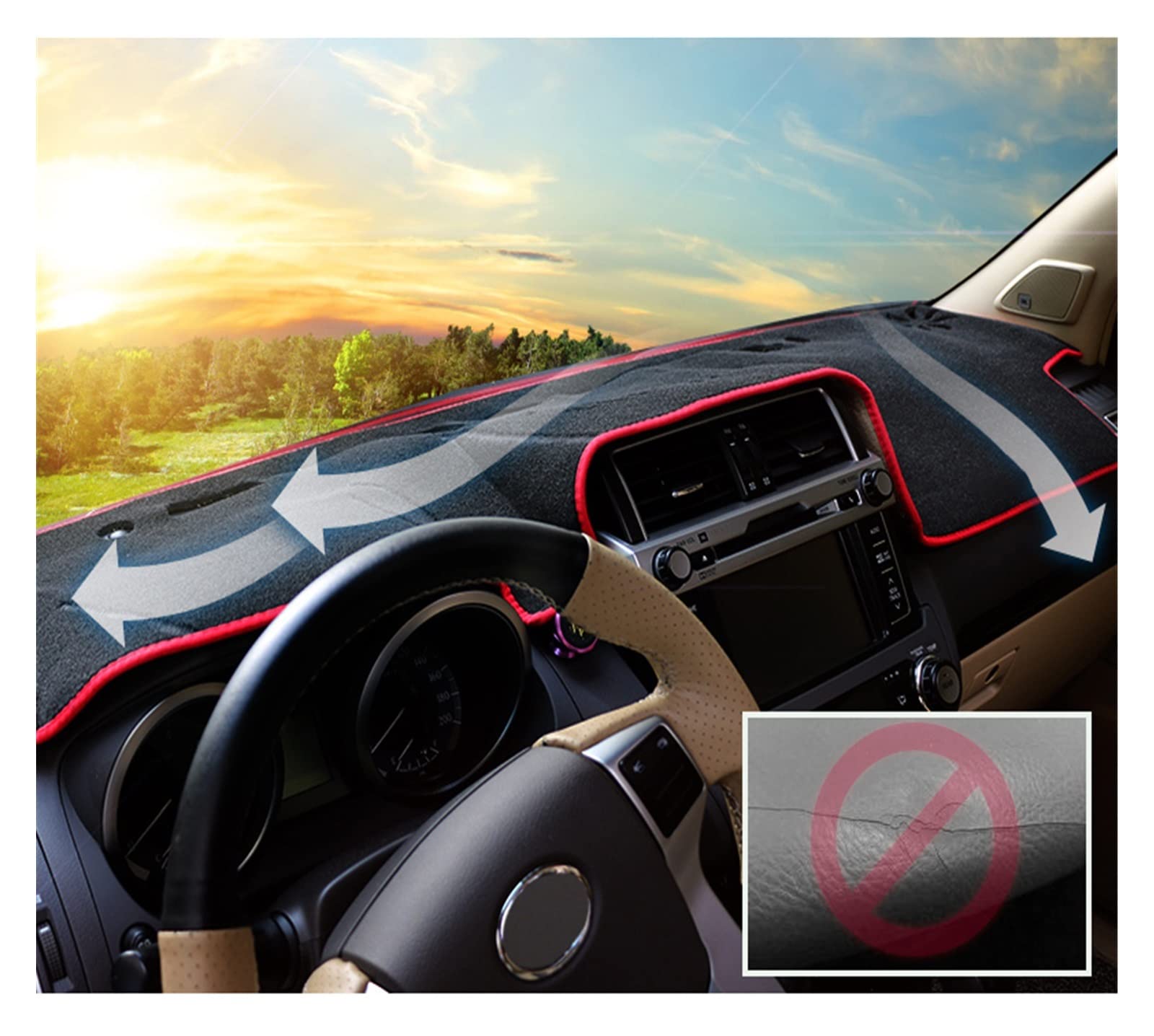 インストルメントパネルを保護し、まぶしさを軽減し、太陽光による劣化やひび割れを防ぎます。 通気口を大きくすると、デミスターの空気の流れが制限されるのを避けることができます。
