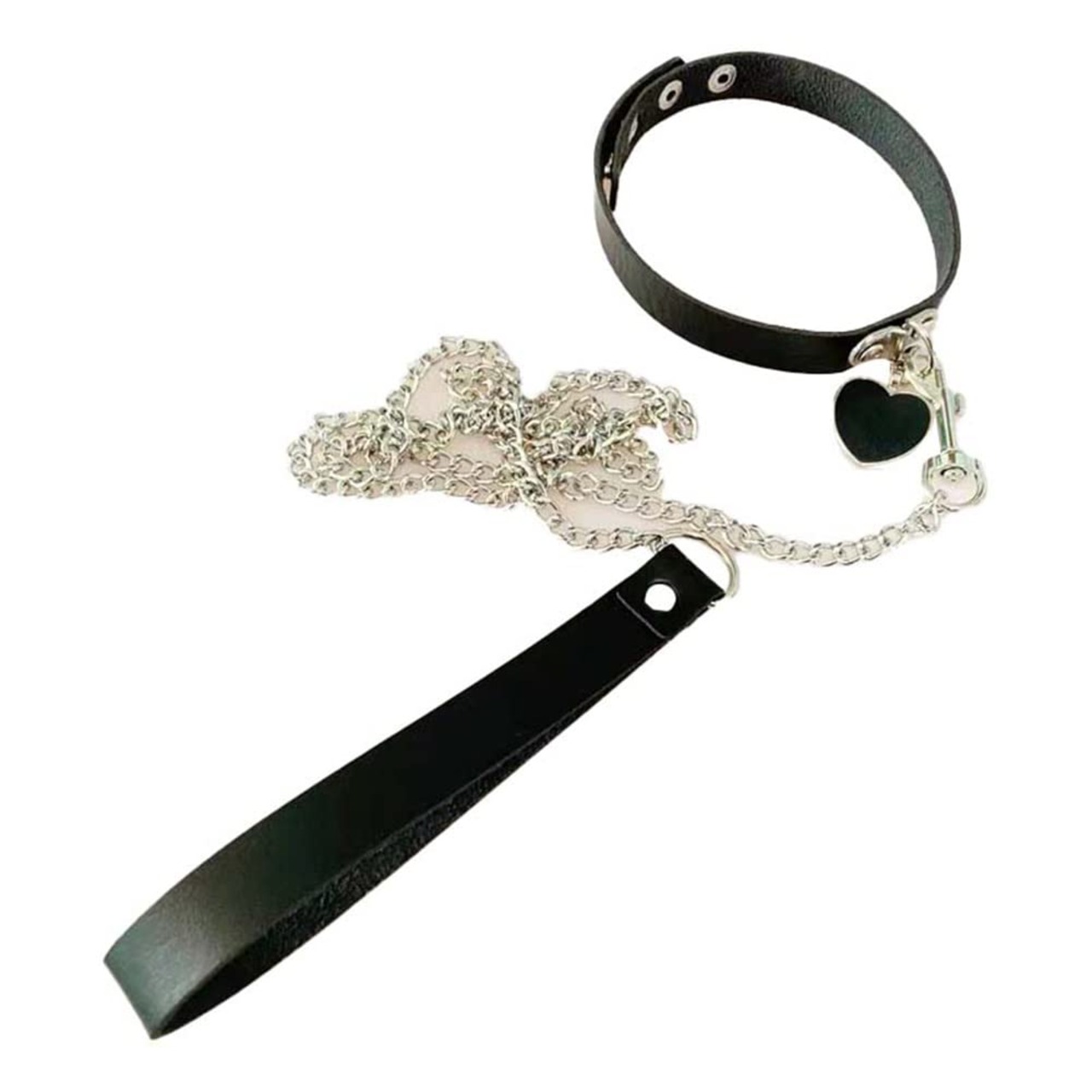 SM 首輪 リード付き 人間用 女子 チョーカー 鎖骨 首輪 ネックレス 地雷系 コスプレ アクセサリー 可愛い おしゃれ 吊り輪 レディース PU choker 調節可能 初心者向け smグッズ smプレイ コスチューム コスプレ小物・小道具 (ハートタイプ)