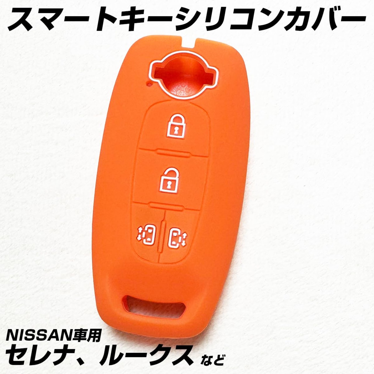 【IKT】日産車用 スマートキー用シリコンカバー 4ボタン / セレナ (2023~) / ルークス (2023~) / など 専用設計でピッタリサイズ 傷防止 さらさらシリコン ニッサン NISSAN車用(NS-012OR)