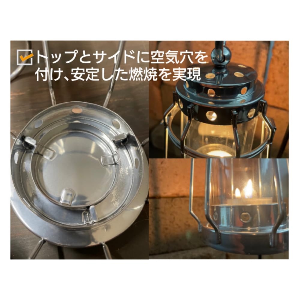 【トゥルムランタンミニ】テーブルの上でも場所を取らない、コンパクトサイズの キャンドル ランタン。「トゥルム」とはドイツ語で「塔」という意味。シンプル かつインダストリアルなデザインで アウトドア シーンを盛り上げます。あかりが主役になるマットブラック、使い込むほどに味が出るツヤ消しゴールド、クールでスタイリッシュなメタリックシルバーの3カラー。フックハンドルは可動式です。従来の350mmタイプと比べて、横風に強いアウトドア仕様に。ランタンスタンドと合わせて室内用の灯りにもぴったりです。 【仕様】サイズ:本体/φ98×H185mm(ハンドル含む) ホヤ/φ58×H84mm 材質:鉄、ガラス 重量:210g