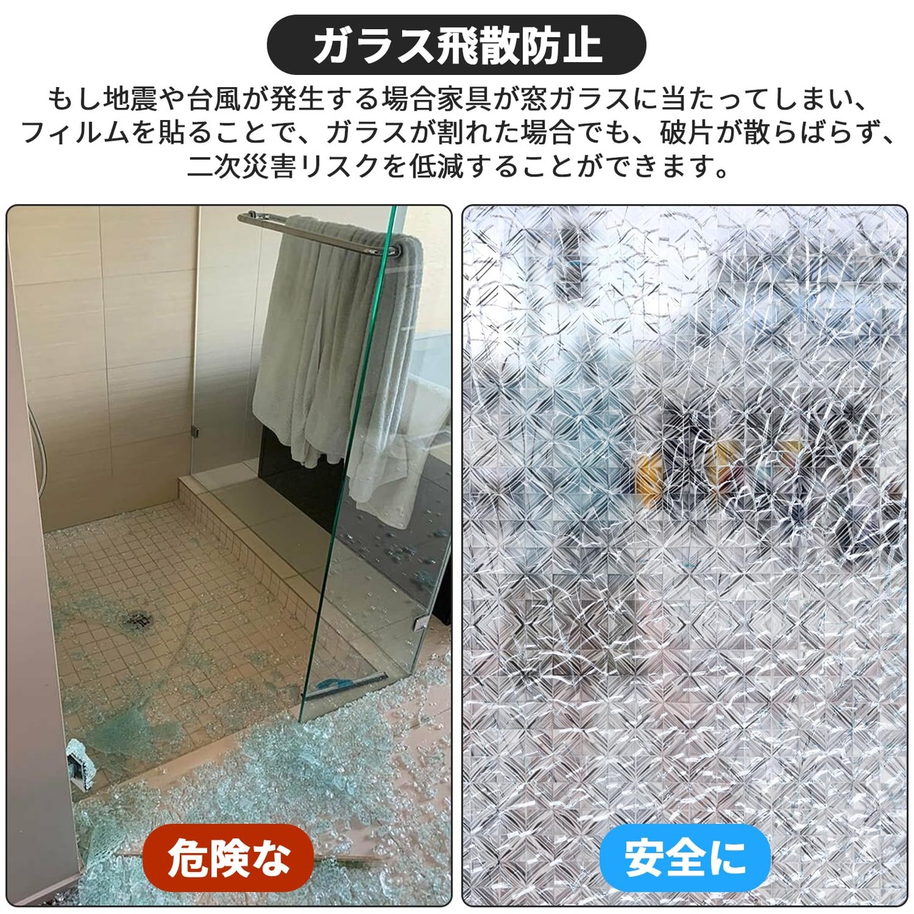 【適用場所が広い】目隠しフィルムは、浴室、オフィス,キッチン、トイレ、リビング、ダイニング、玄関、和室、窓、店舗、カフェ、事務所、イベント会場、展示会場などのガラスに適用します。(※貼れないところ:粗いまたは凹凸のガラス、窓の外側、80℃以上のところ、埃と繊維が付いたガラス、特殊ガラス(網入りガラス、ペアガラスなど)。)