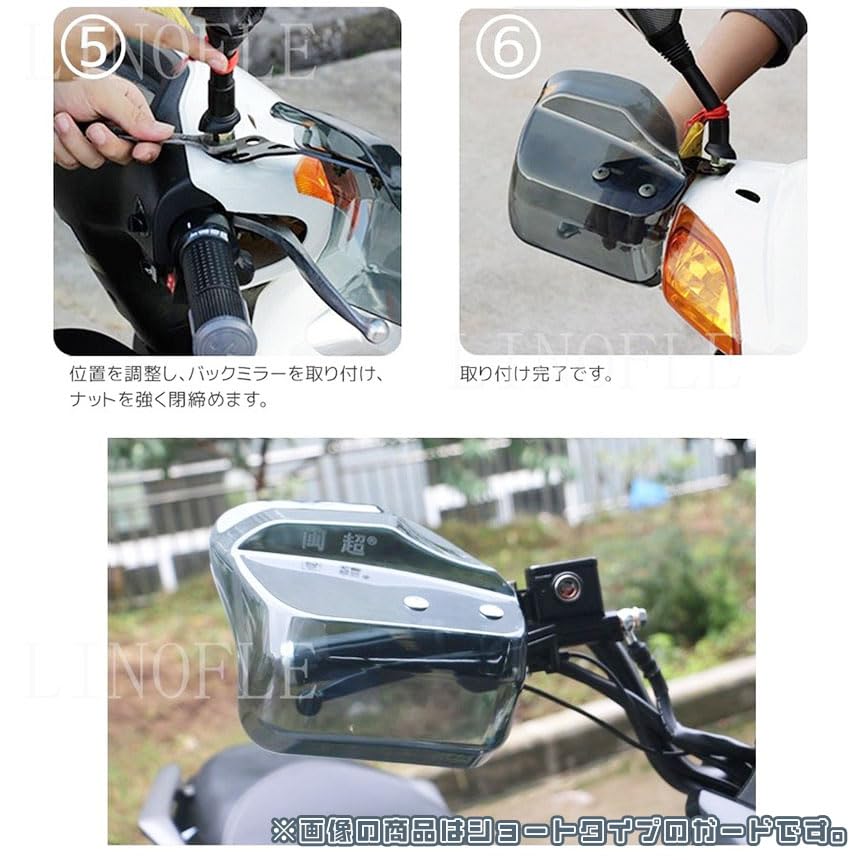 【大きめで安心のデザイン】ナックルガードは長めの設計でデザインされているため、運転中のの耐風性があがり、防風・防寒の範囲が広がります。【いろいろ守ります!】障害物や悪天候からガードしてくれるナックルガード 。転倒の際や、オフロード走行時の泥はねや飛び石、小枝などからレバーや手を守ってくれたりもします。手の冷えや雨天時に濡れてしまうのも防止します。