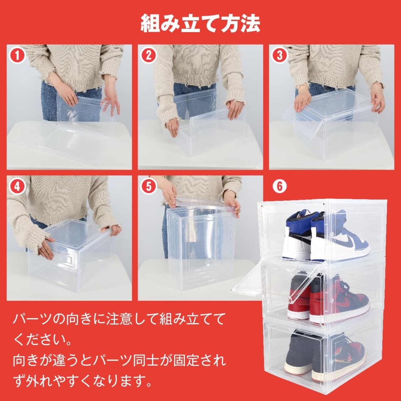 簡単アクセスと耐久性:クリアなシューズボックスでスニーカーの収納とディスプレイが同時に可能。スニーカーラックとしても使用し、あらゆる収納ニーズに対応。