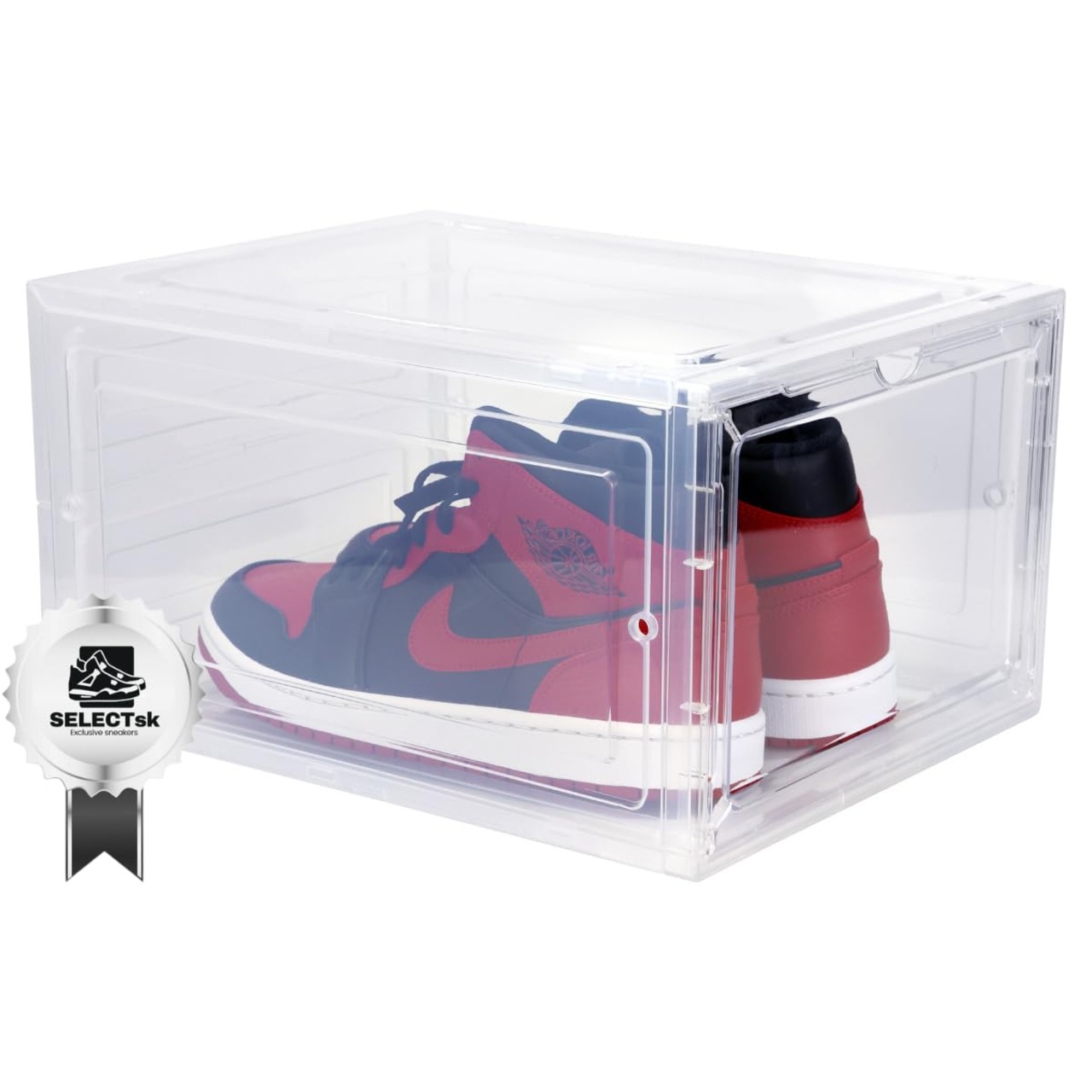 多機能シューズケース:ハイカットスニーカーやナイキ限定品など、大切なコレクションを美しく展示。クリアケースで隙間収納にも適し、どの角度からも鮮明に見えます。フィギュアや文房具の保管にも理想的。サイズ: 縦18.5cm×横27cm×奥行34cm、重量: 644g