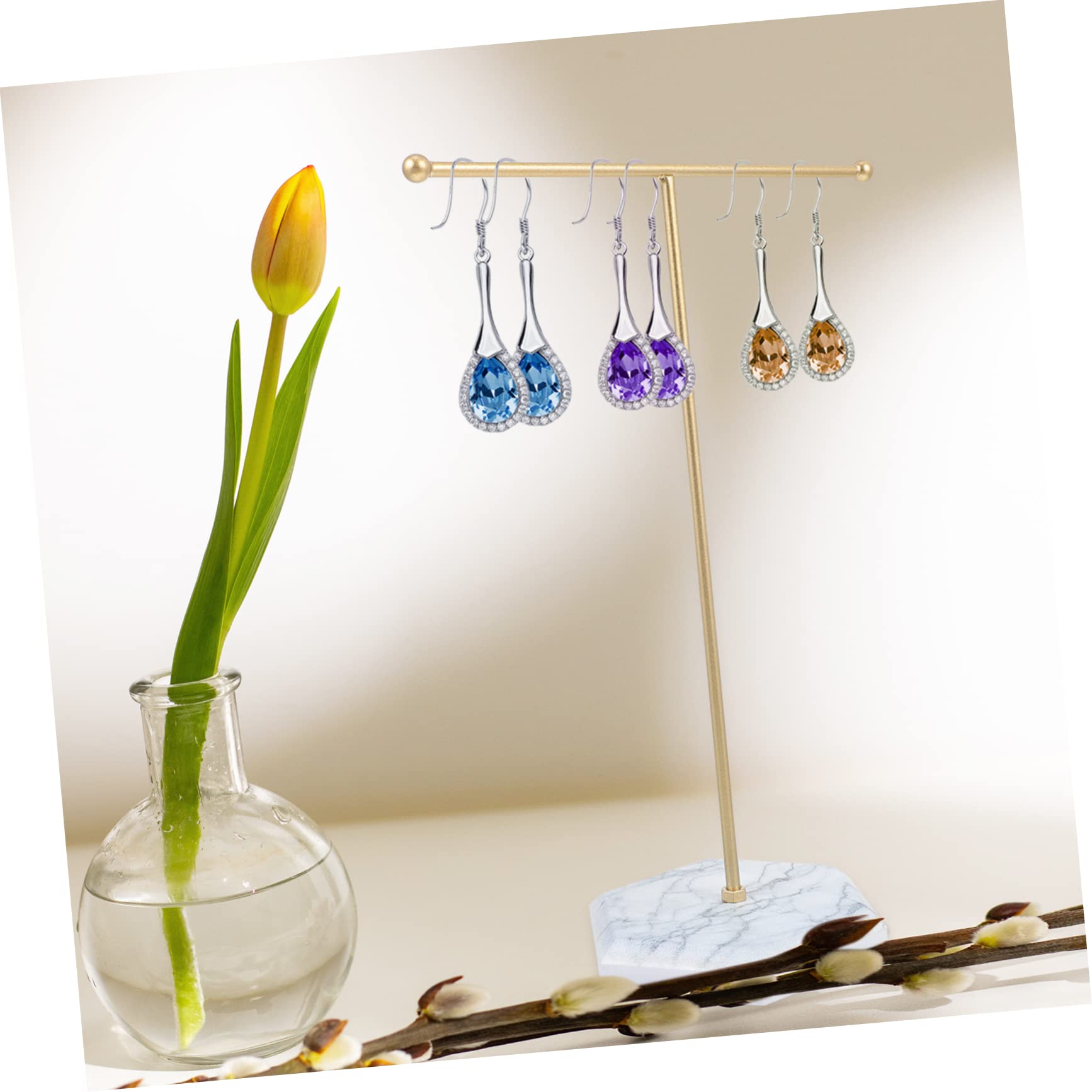 イヤリングスタンド:イヤリングディスプレイスタンド、メタルイヤリングtバースタンド、大理石ベースジュエリーホルダーツリースタンド、カウンタートップ吊り下げジュエリーラックオーガナイザー、ネックレスブレスレット用。