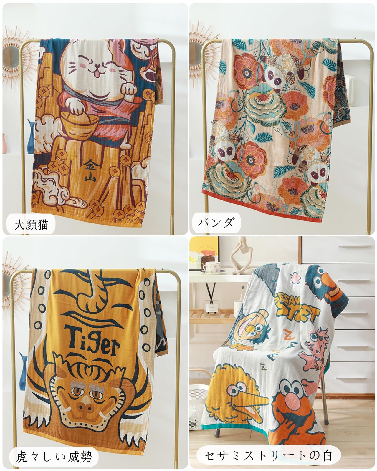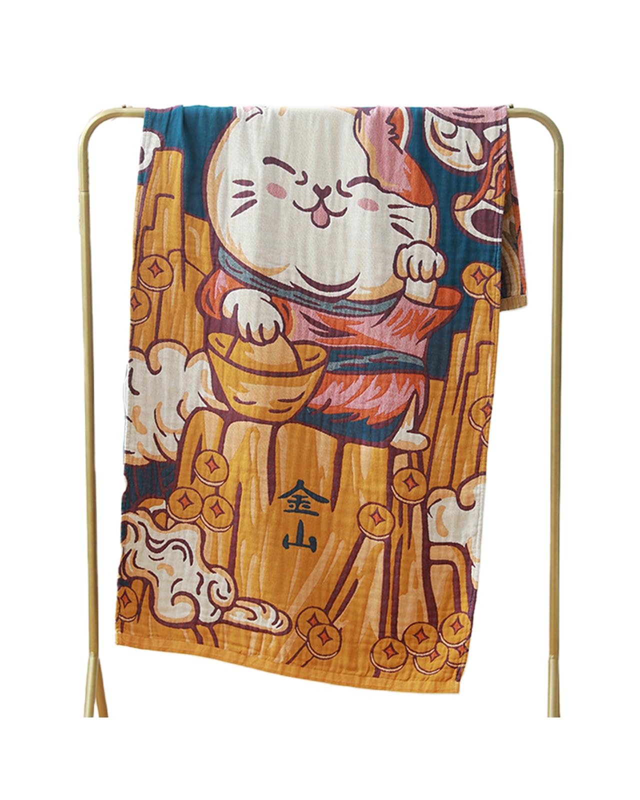 Alipガーゼバスタオル ふわふわ バスタオル 大判 キャラクター 可愛い五重綿沐浴ガーゼタオル 吸水タオル 速乾タオル 浴用タオル 体拭きタオル プールタオル 温泉タオル ビーチタオル サウナタオル バスタオル 業務用 毛羽落ちしないバスタオル 通気性肌触り耐久性 80*160cm 大顔猫