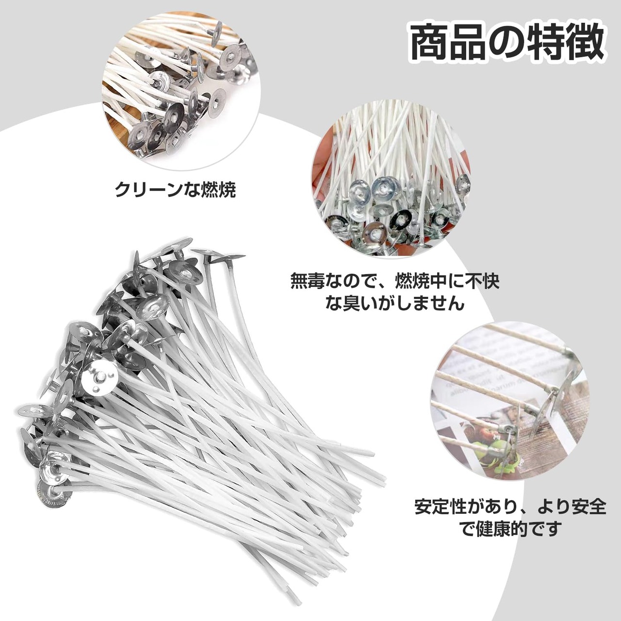 [パッケージ内容]:100pcs 10cm ホワイトキャンドル芯(ベース付)個性的なアロマキャンドルや工芸品を作るのに十分で、満足感のある体験をしてくれます。