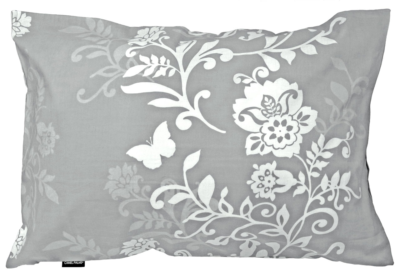 CAMEL PALMS 日本製 綿100% まくらカバー ピローケース ファスナー式 35×50cm シルエットフラワー グレイ
