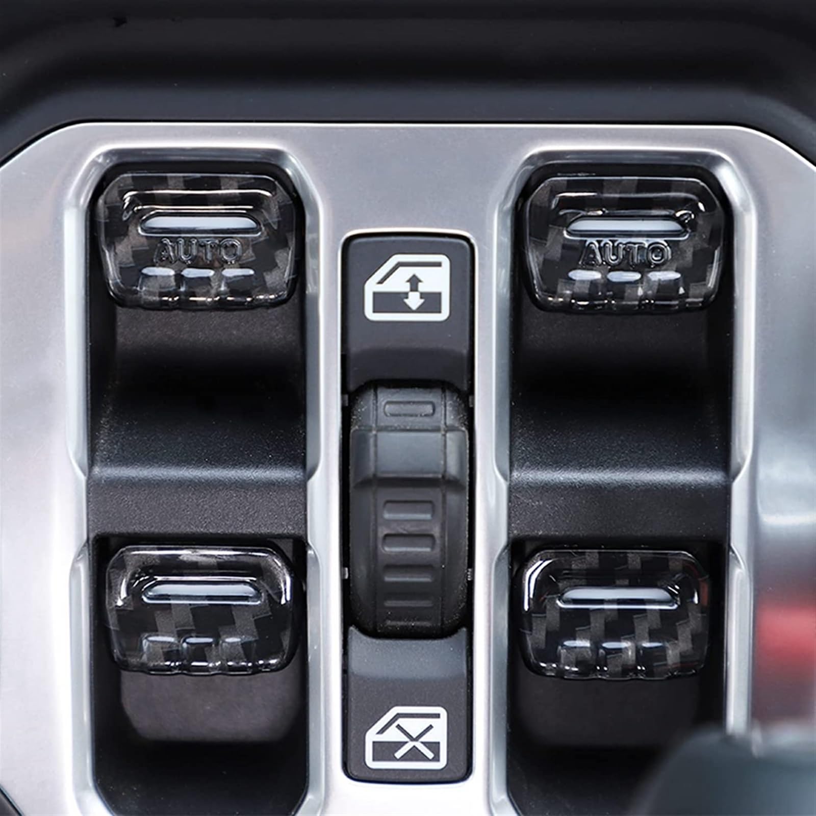 車のウィンドウスイッチボタンカバートリムインテリアアクセサリー ジープ ラングラー JL グラディエーター JT 2018-2021 に対応 (ABS カーボンファイバー)
