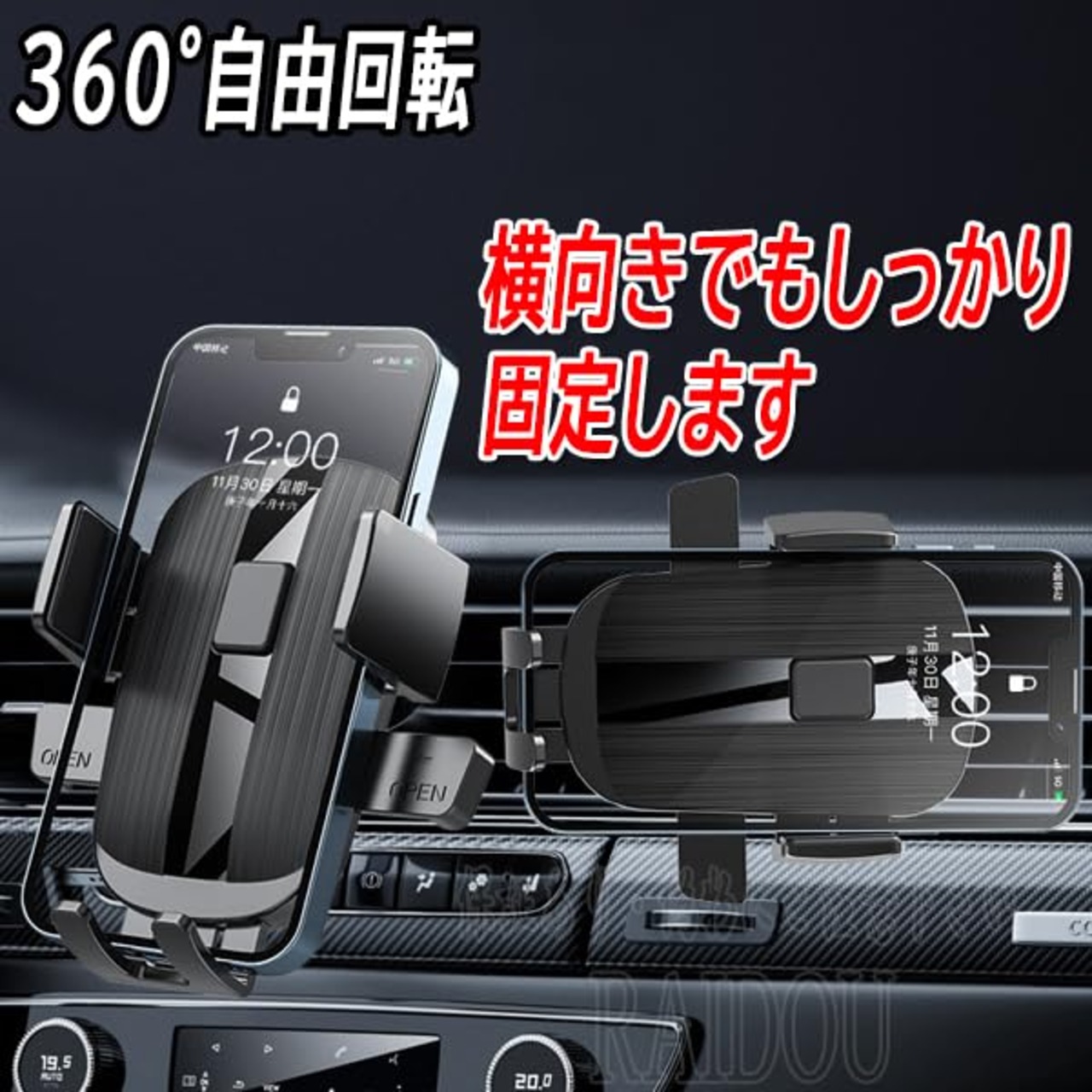 スマホホルダー エアコン 吹き出し口用 ワンタッチ開閉 汎用タイプになりますので幅広い車種に対応しております。 ・スマホを押し当てるだけのワンタッチホールド式スマホホルダーです。 ・手帳型ケースにも対応。 ・サイドレバーを少し押すだけで、スマホの取外しが可能です。 ・ホルダー部は360°回転ボールジョイントで縦横置き対応。お好みの角度に調整が出来ます。