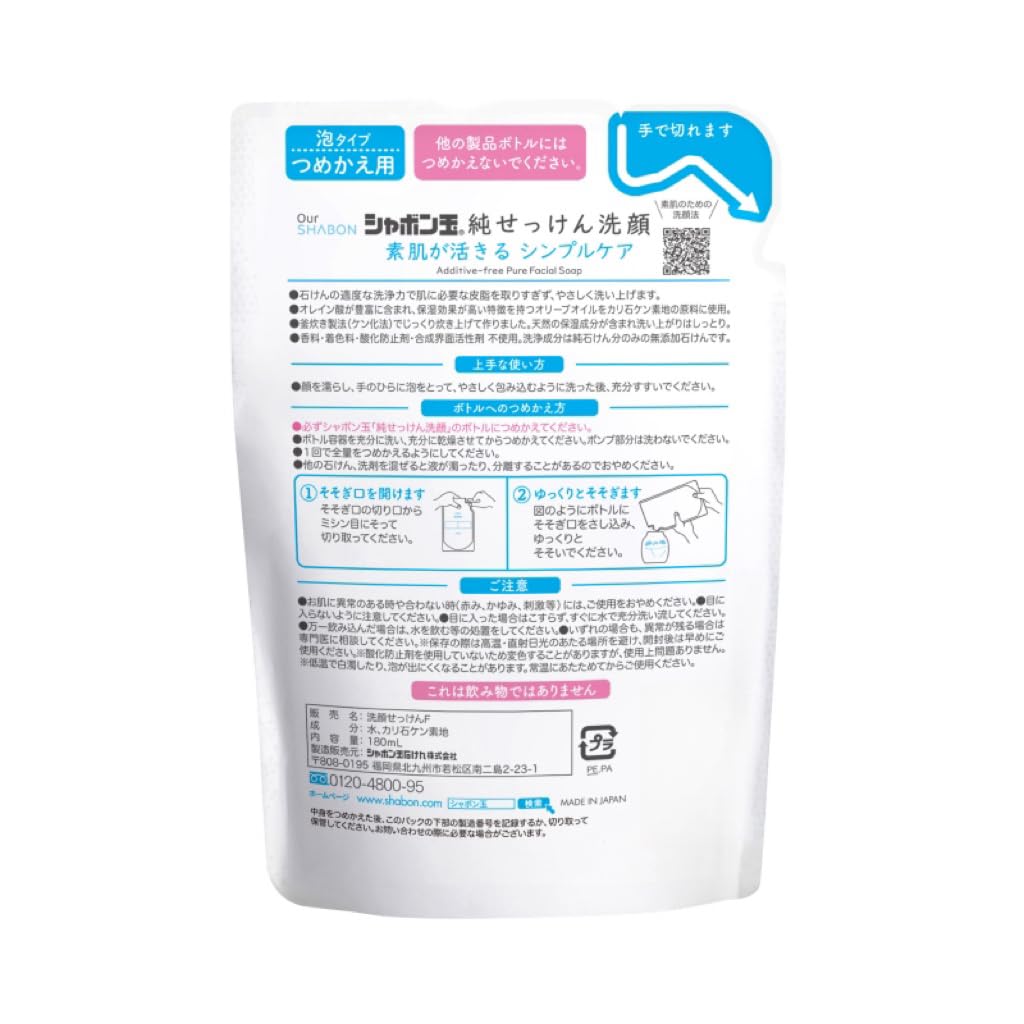シャボン玉 純せっけん洗顔 泡タイプ つめかえ用(180ml)×3