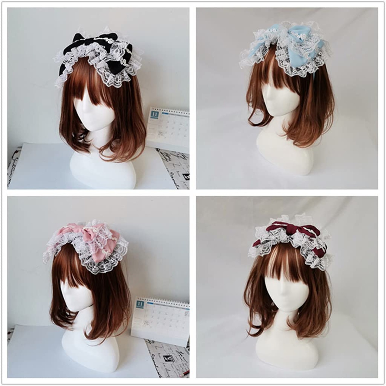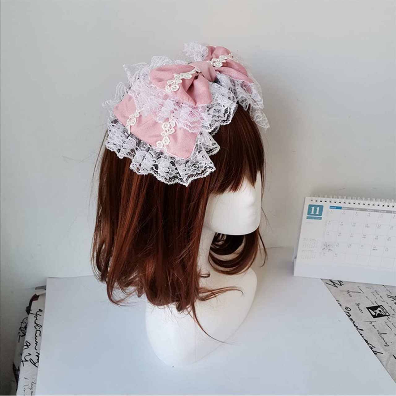 素敵な甘いヘアバンドメイドコスプレヘッドバンドフリルレース帽子手作り二層ちょう結びヘアアクセサリー甘いビッグヘアフープ