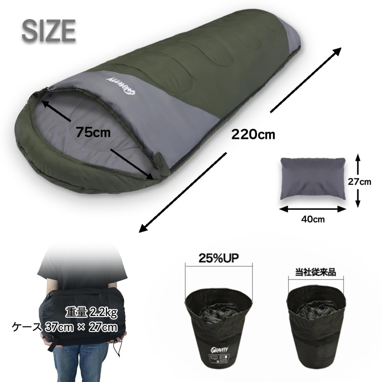 Alexilia (アレクシリア) 寝袋 シュラフ 枕付き コンパクト 冬用 限界使用温度-15度 (コヨーテ)