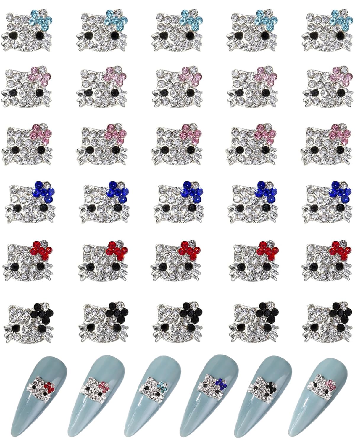 YACHUN ネイルパーツ キティ 可愛い 3D 立体 デコパーツ 30個セット メタルパーツ キラキラネイルジュエリーパーツ DIY ネイル デコパーツ 手芸 ハンドメイド ネイルデザイン(6種類)