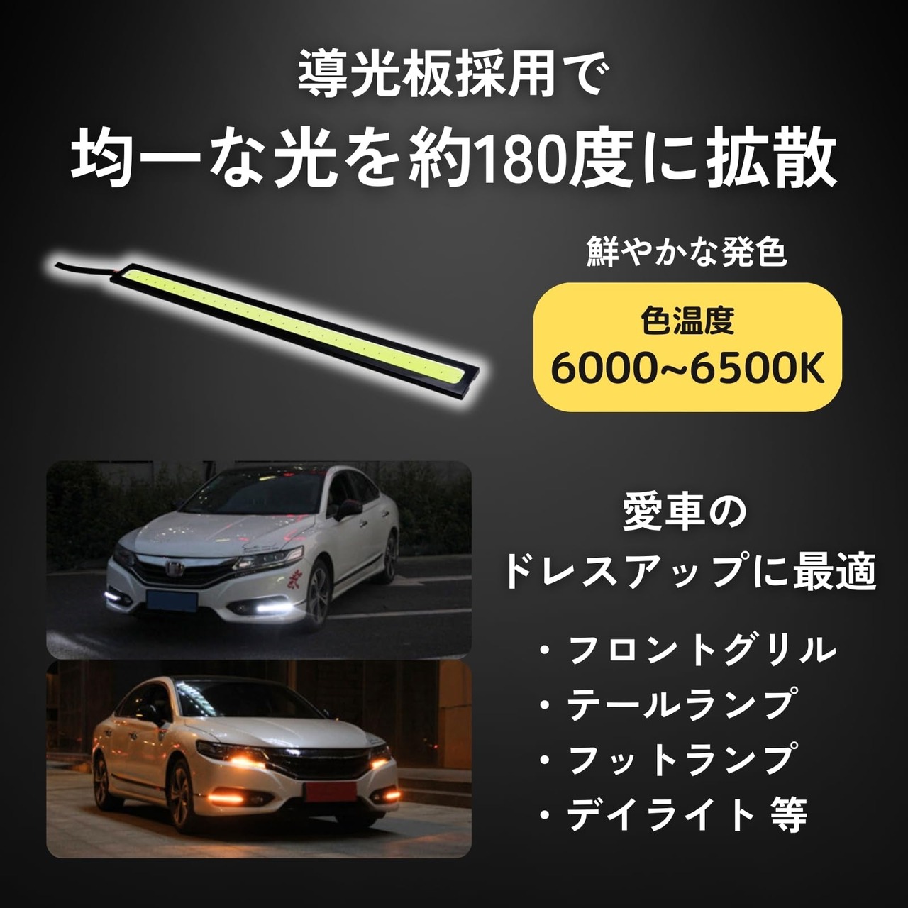 全面発光タイプで薄型で爆光のLED(COB)デイライト(バーライト)4本セットになります。
