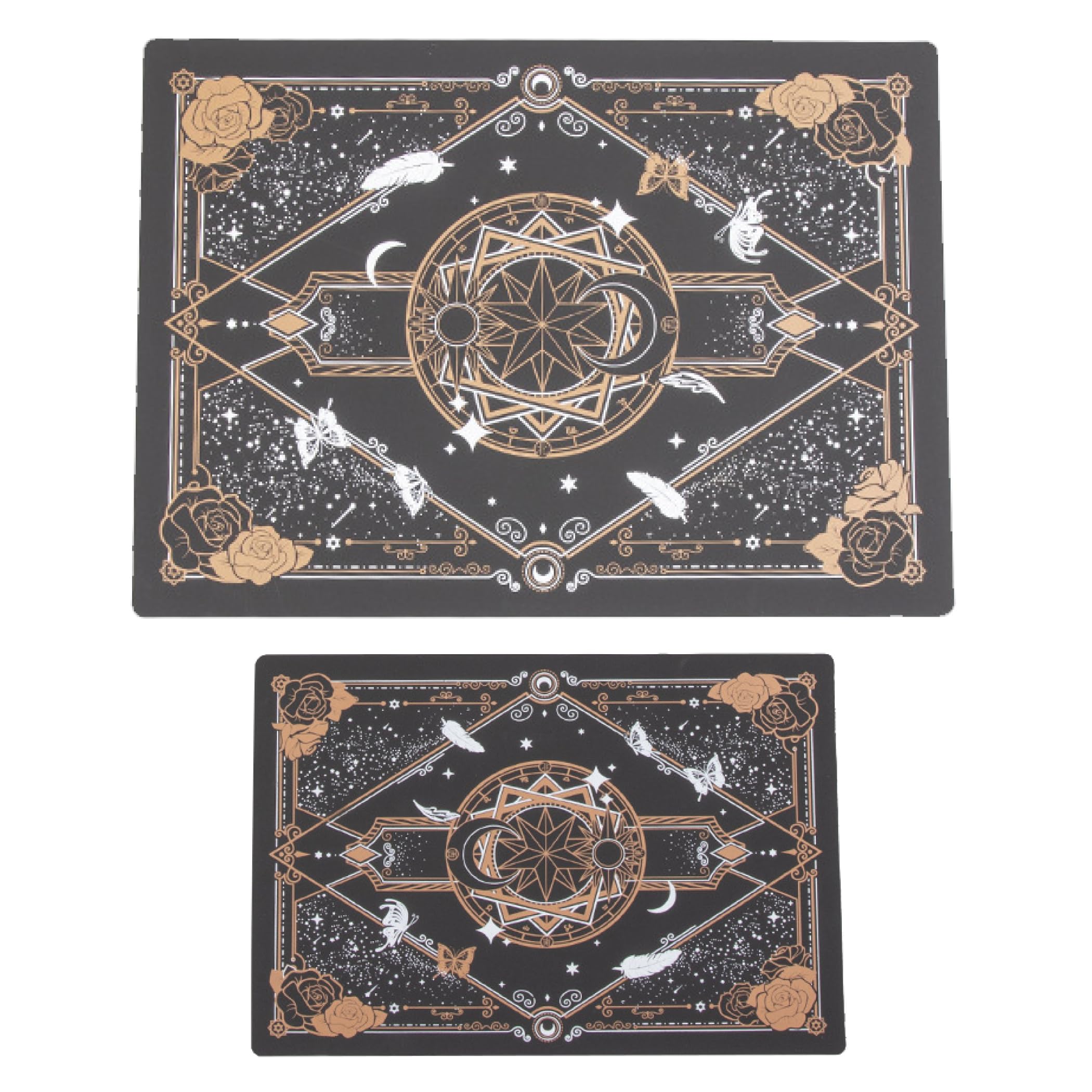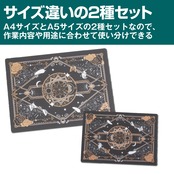 サイズ違いの2種セット:A4サイズとA5サイズの2種類のカッターマットがそれぞれ1枚ずつ揃ったセットですので、作業内容や用途に合わせて使い分け可能です。両面印刷タイプのカッターマットで、表面は魔法陣のデザイン、裏面は方眼入りのデザインとなっております。