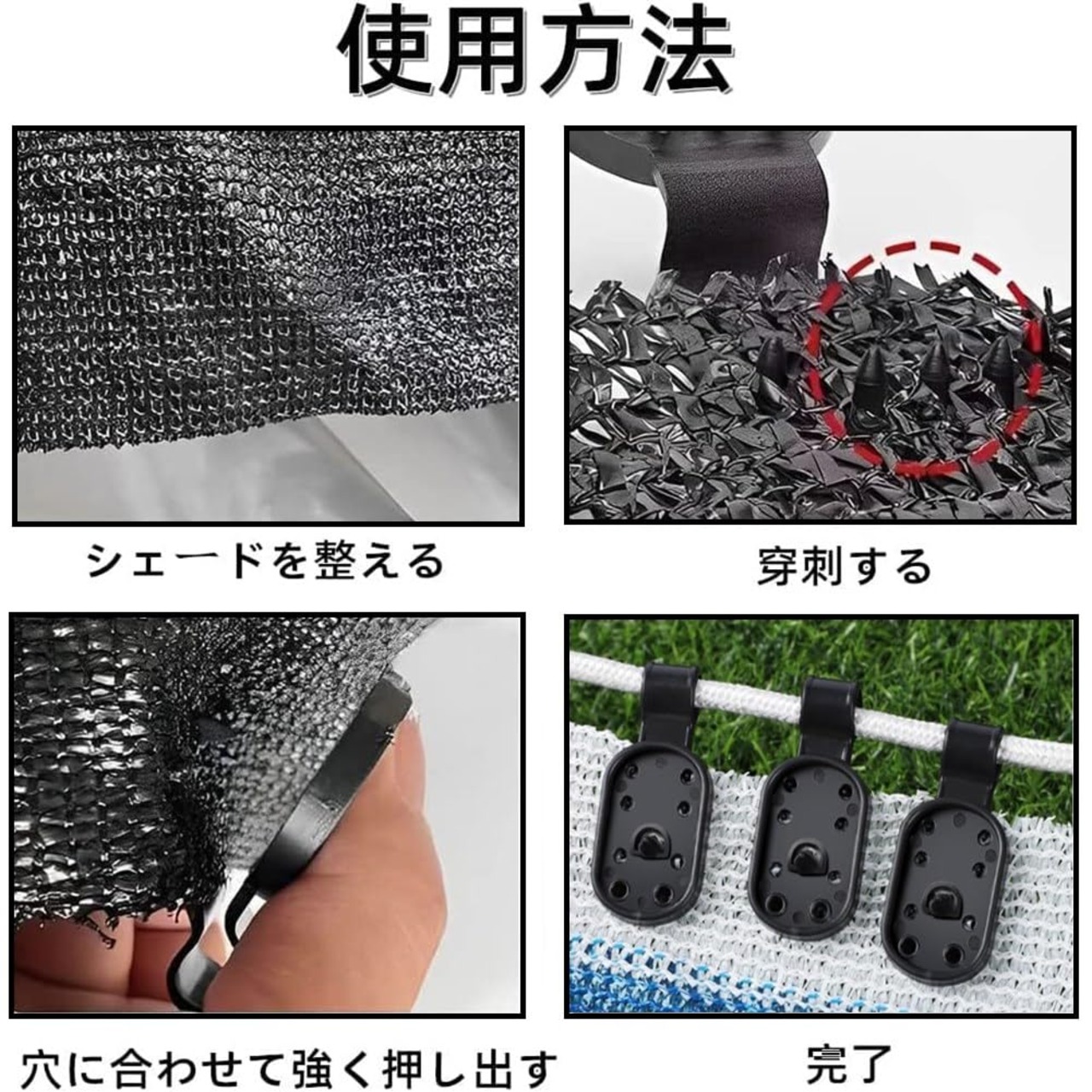 【素材】シェードクロスクリップは、長いサービス時間を持つ耐久性のPP素材で作られており、風に吹き飛ばされるのを防ぐために日よけをうまく固定し、紫外線や鳥が日よけを通過するのを効果的にブロックすることができます。