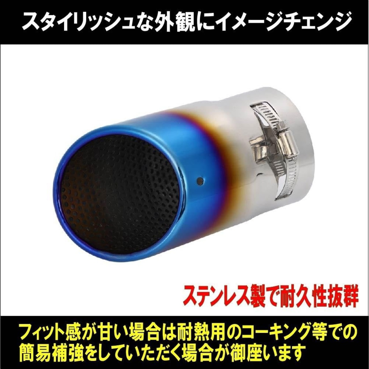 【商品内容】・本体 1個(固定バンド付属)【材質】・ステンレス【サイズ】・画像にて詳細寸法を記載しております【カラー】①ブラック ②シルバー ③ ブルー ④ カラフル 計4種類をご用意しております【参考適合車種】・デリカ / DELICA D5・マツダ CX-3 CX-4 CX-5 等(デュアルマフラーの場合は本商品は2個必要になります) ※ 記載している車種以外にもサイズが合えば様々な車種にご使用が可能です。取り付け径が80mmとなっておりますので、80mm以下(-5mm適度であればバンドで締め付けて固定できるかと思います)