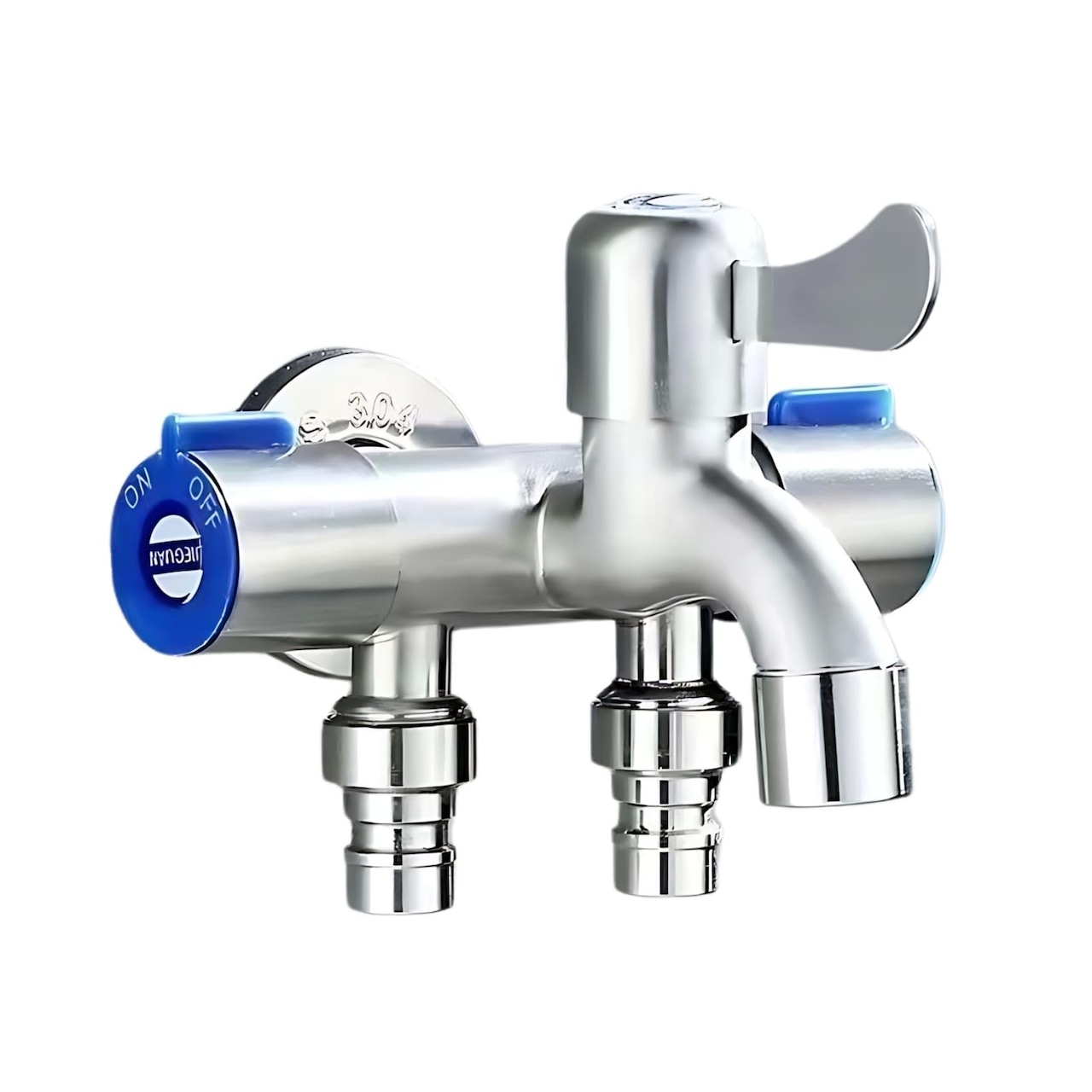 【多機能で効率的な3分岐設計】 一つの蛇口から3つの出水口があり、洗濯・散水・洗車など複数の用途を同時に行えます。作業効率が大幅にアップします。 【世界標準規格で幅広い用途に対応】 G1/2の世界標準規格ネジを採用しているため、ほとんどの家庭の水道に取り付けが可能。洗濯機だけでなく、キッチン、庭の散水、洗車などの様々な場所で活躍します。 【304ステンレス製で丈夫で長持ち】 本体はステンレス一体成型なので、水漏れや亀裂、錆びに強い頑丈な造りです。長期間の使用に耐える丈夫なつくりが魅力です。 【節水設計と手軽なカスタマイズ】 中央の泡沫キャップで節水効果があり、様々なアダプターの取り付けも可能です。用途に合わせてアレンジできる自由度の高さが特徴です。 【サイズ】パイプ径約15mm ネジ規格:G1/2(呼13) 重量:約260g 素材:304ステンレス鋼