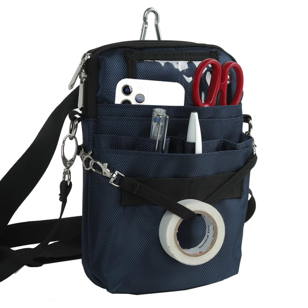 [CARRY ALL BEFORE ONE] 多機能 ウエストポーチ ナースポーチ ウエストバッグ ダブルジッパー 3way マチ付き 文具 工具 作業用 業務用 看護 介護 事務 ベルト付き 撥水 防傷 複数ポケット 引っ掛け帯付き M ネイビー