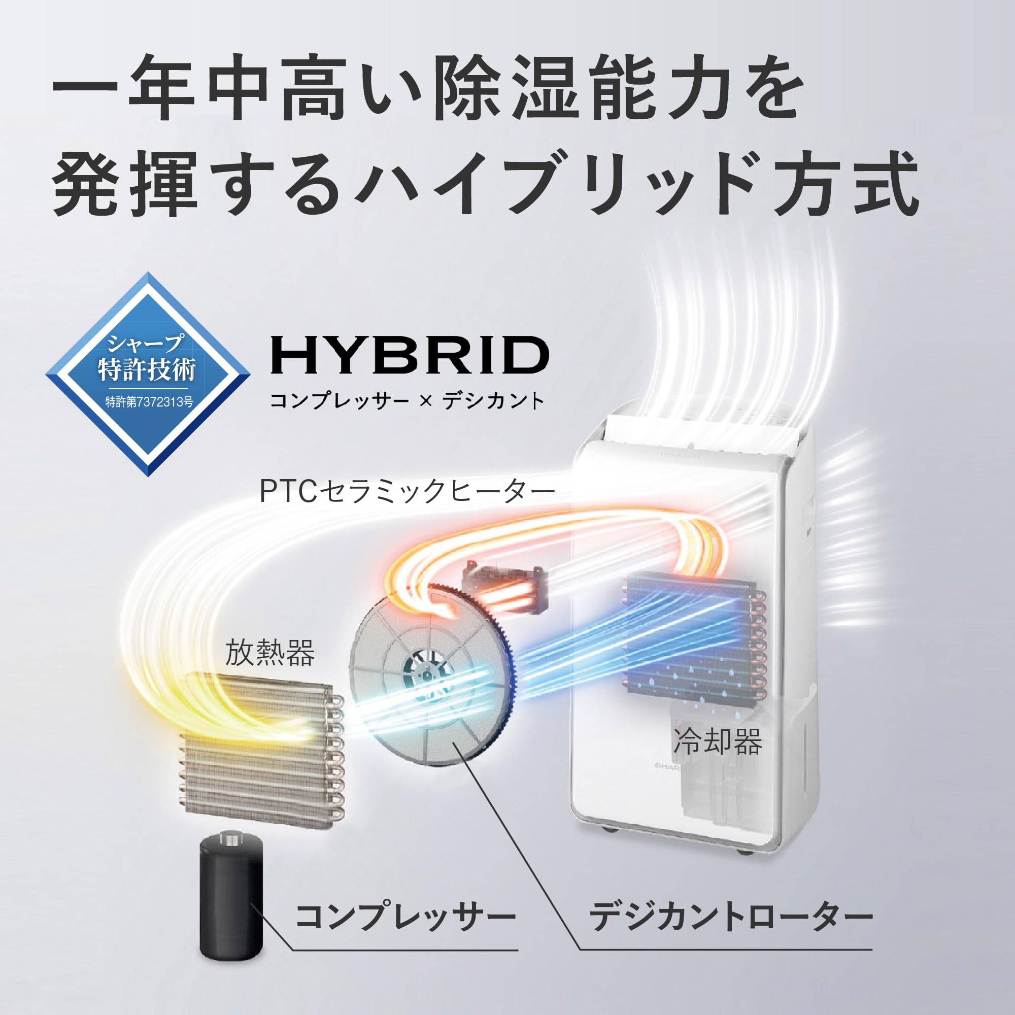 シャープ 衣類乾燥 除湿機 CV-RH140-W ハイブリッド方式 14L/日 年中速乾タイプ プラズマクラスター25000 部屋干し 消臭 広角ワイドルーバー