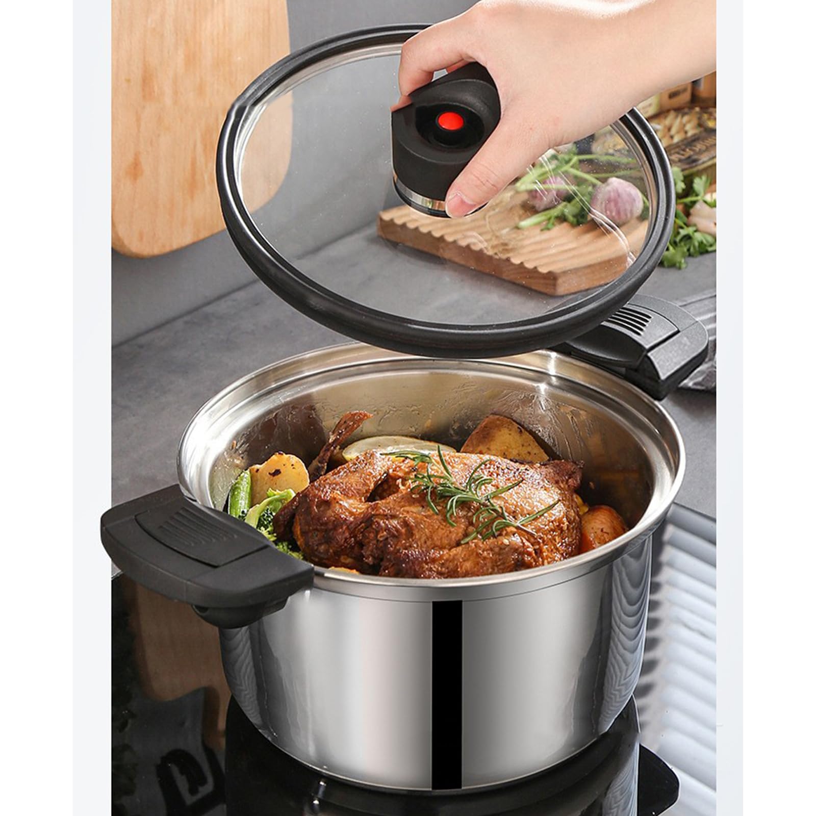 韓国のスタイル304ステンレス鋼の圧力鍋は、圧力技術で調理効率を30%向上させ、速い食事の準備に最適です