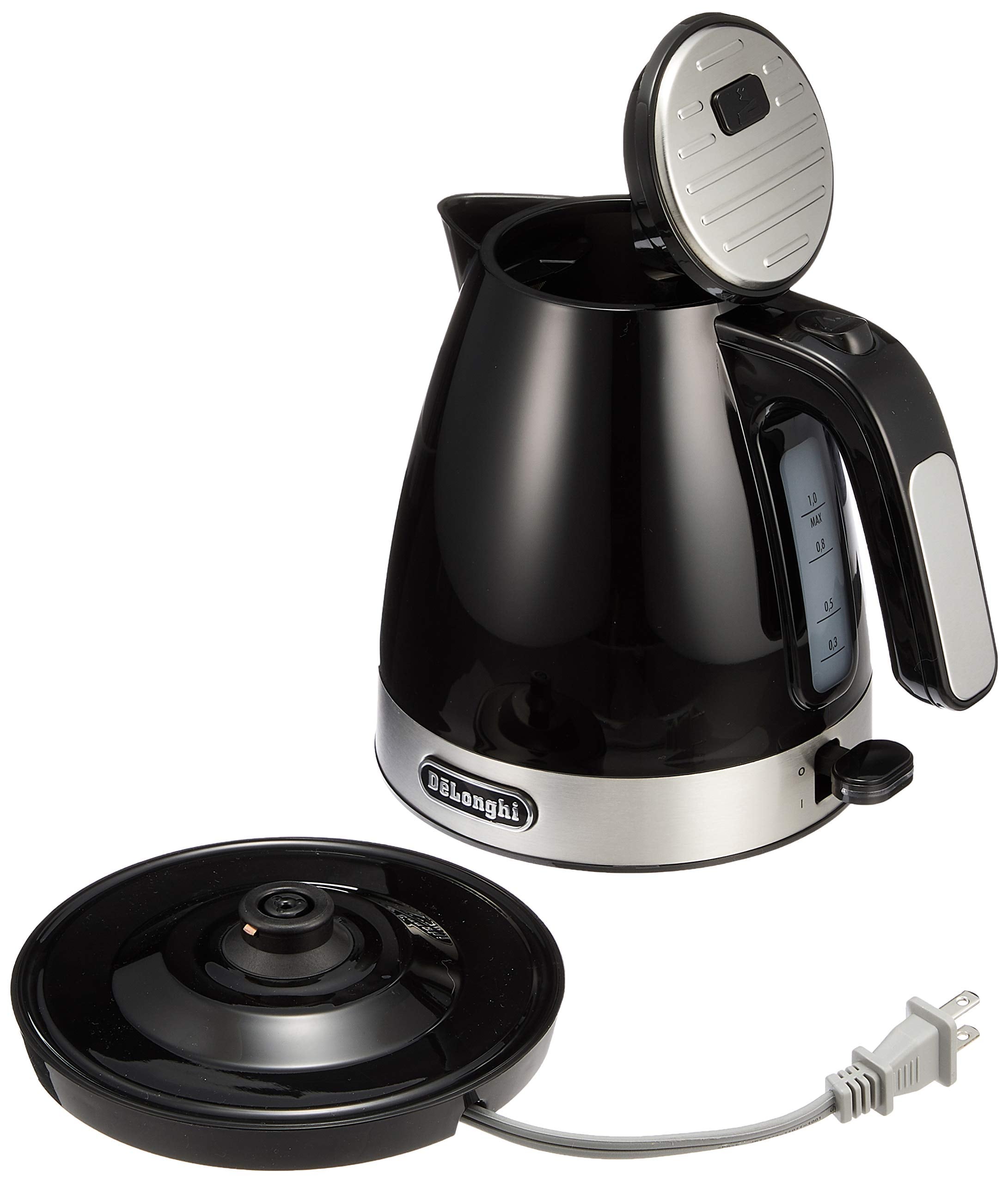 DeLonghi(デロンギ) De'Longhi電気ケトル アクティブ シリーズ KBLA1200J-BK イタリアンデザイン 1.0L ワンプッシュオープン 異物混入防止フィルタ 見やすい水量計 電源コードホルダー [インテンスブラック] ファミリー登録で3年保証
