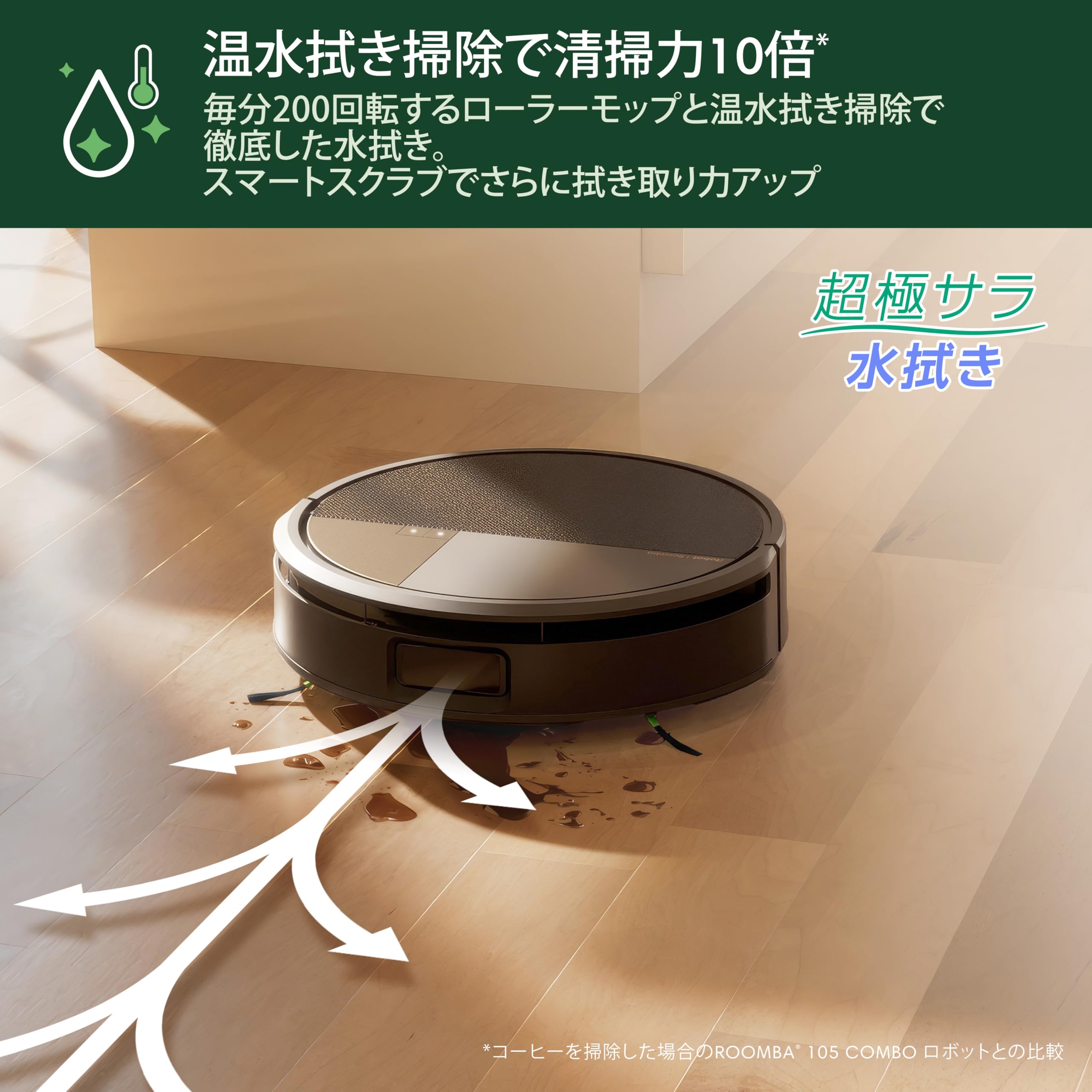 家の徹底お掃除は、Roomba Max 705 Combo ロボット + AutoWash 充電ステーションにお任せ。革新的なPowerSpin ローラーモップを搭載。モップの汚れを常に落としながら清潔に保つため、いつもきれいなお部屋を体感できます。PerfectEdgeは隅々までくまなく清掃。部屋全体を清潔に保ちます。業界初のモップカバーを装備。カーペットを検知すると、カーペットに濡れた汚れが広がらないようにします。